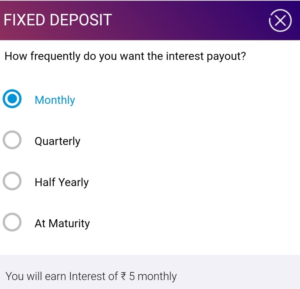 Provide the tenor of FD at your convenience. At this moment, down below the screen, you will be able to see the rate of interest the bank is offering you.